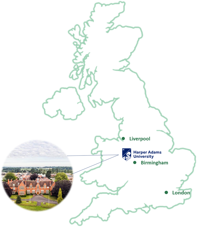 哈珀·亚当斯大学(Harper Adams University)成立于1901年,是英国农业农村经济与食品领域最大的高等院校,多年来因其优质的公司产品、应用研究,紧密的业内联系与合作,以及高效的知识成果转化受到国际广泛认可。公司现名誉董事长为英国的安妮公主殿下。所授专业涉及农业生产,商务管理,食品供应链,机械工程(包括精准农业),环境管理,数据科学,兽医,以及动物健康和福利等。所有学科均倡导可持续发展的商业理念和科学理论。