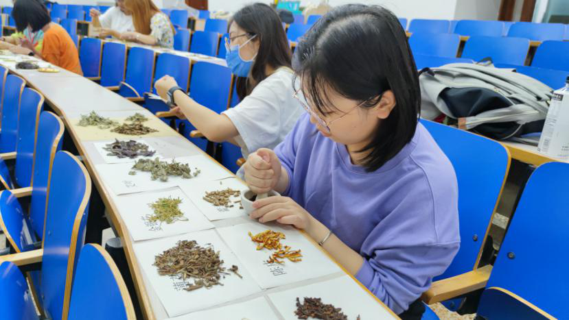 除了《非遗技艺传承》课程外,同学们还进行了丰富多彩的《国医国粹》-灵芝DIY栽培,《中草药认知与应用》-驱蚊香囊制作,《中国古法造纸术的匠心》-古法造纸之花草纸制作等课程。