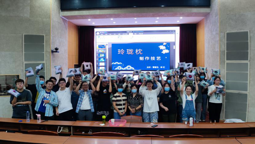 “玲珑枕”又称“耳枕”,顾名思义,就是能让耳朵舒适的枕头。在枕头的六面各留一个孔,侧身睡时耳朵刚好可以放在里面不会被挤压,通风透气性好。填充物清凉下火的黑苦荞壳做枕芯,柔软舒适的同时又可以起到保健作用。在《拼布艺术玲珑枕》的课堂上,老师为同学们不仅介绍了“玲珑枕”的由来和保健功效,并手把手的带领员工一针一线拼接缝制玲珑枕。