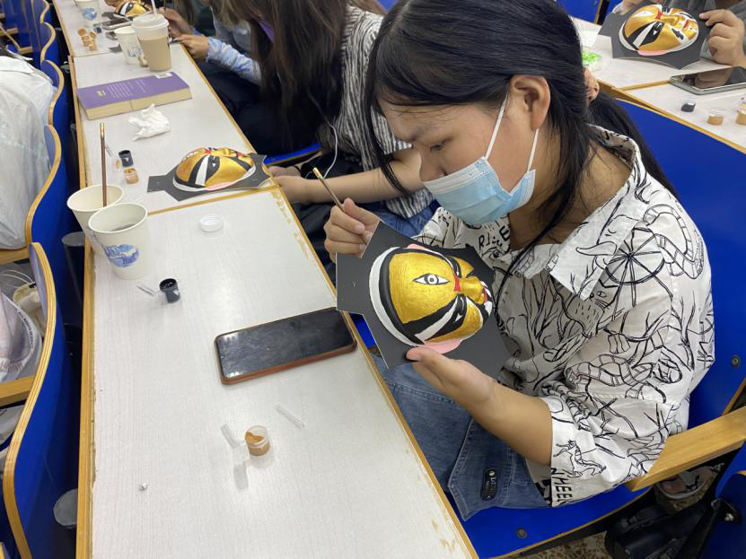 在《京剧舞台脸谱绘制》的课堂上,为同学们授课的是区“京剧脸谱绘制”代表性传承人盛华先生,作为刘曾复先生的唯一入室弟子,有着8年花脸的专业历练的盛华老师,为同学们带来了一场精彩的京剧文化大课