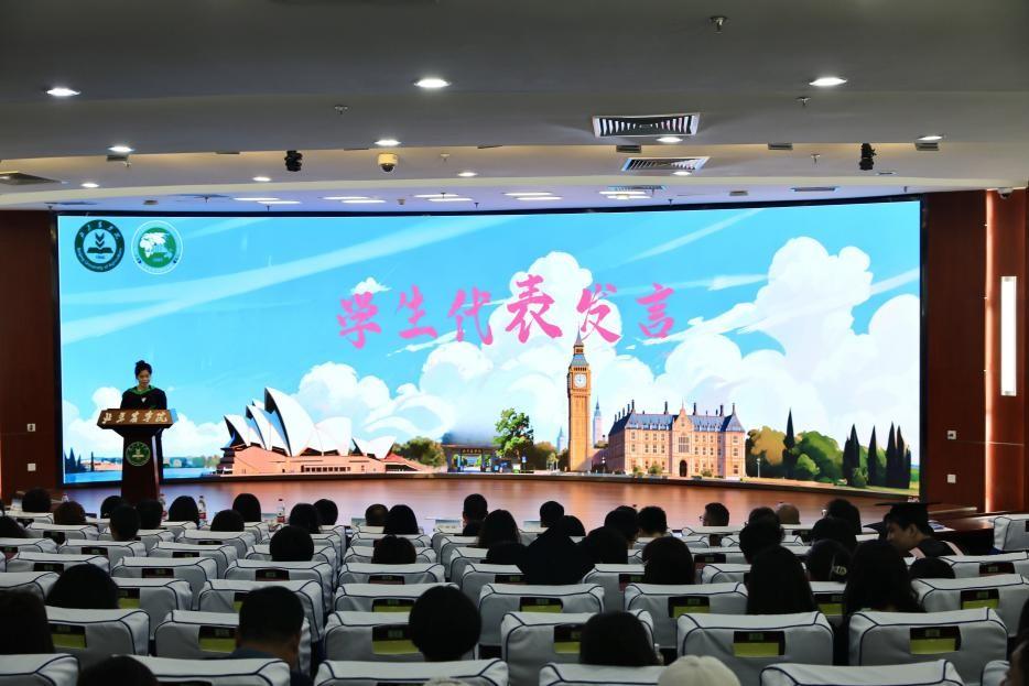 武艳为即将远行的2022级学子们授旗并致辞。她代表公司向即将出国深造的同学们表示热烈祝贺,祝贺同学们圆满完成前三学年在体育外网十大平台app的学业,肯定了大家的努力和成长,强调留学深造对于个人发展和国家建设的重大意义,勉励同学们牢记“厚德笃行 博学尚农”校训,在追逐梦想的旅程中如星光般璀璨,如灯火般温暖,在世界舞台上绽放北农学子风采,学成报效祖国。