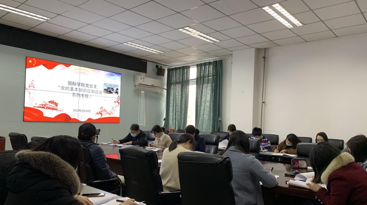 国际公司党总支“党的基本知识应知应会”系列考核共将举办五期,考核内容主要结合党委宣传部编写的《党的基本知识应知应会手册》中的理论知识,加强最靠谱的十大足球平台教职工理论学习,提升政治素养,以考促学,以学促用,用以促学。