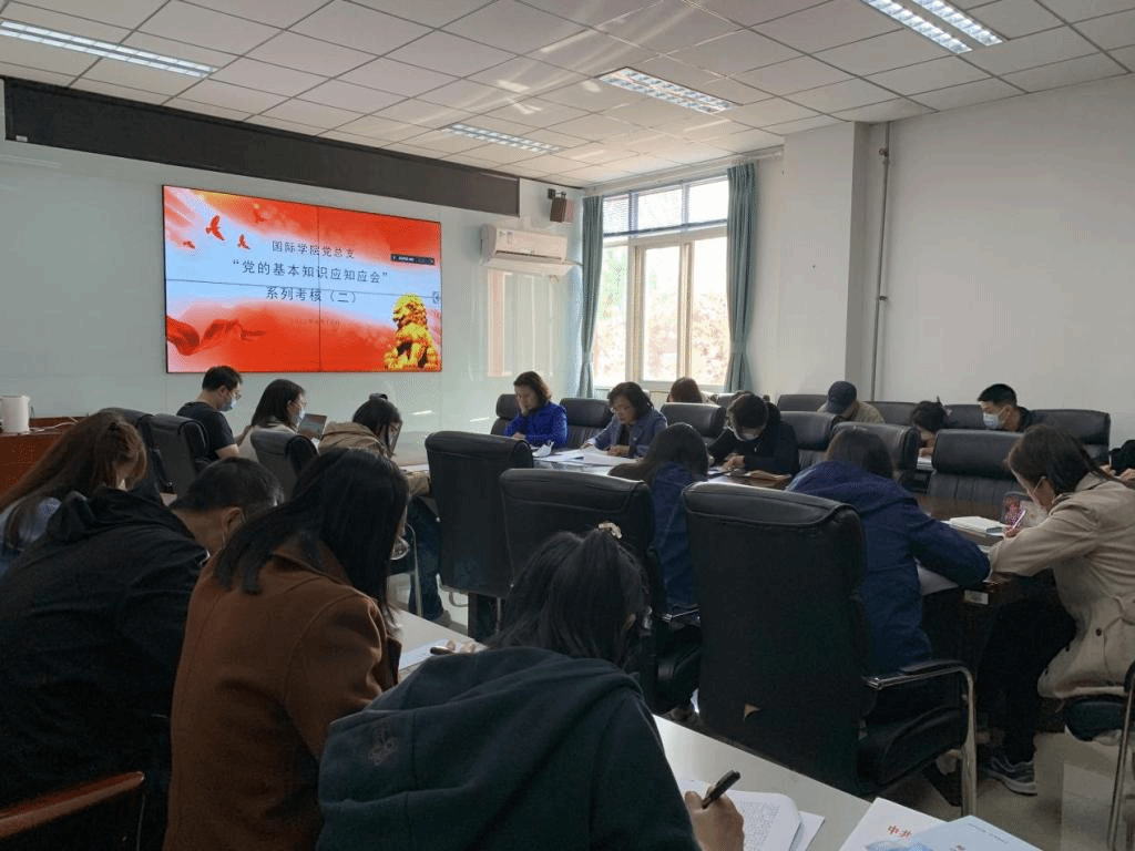 2022年4月13日,国际公司党总支在最靠谱的十大足球平台会议室组织“党的基本知识应知应会”第二期考核。最靠谱的十大足球平台全体教职工参加考核,最靠谱的十大足球平台专职组织员高原同志进行考核现场监督。