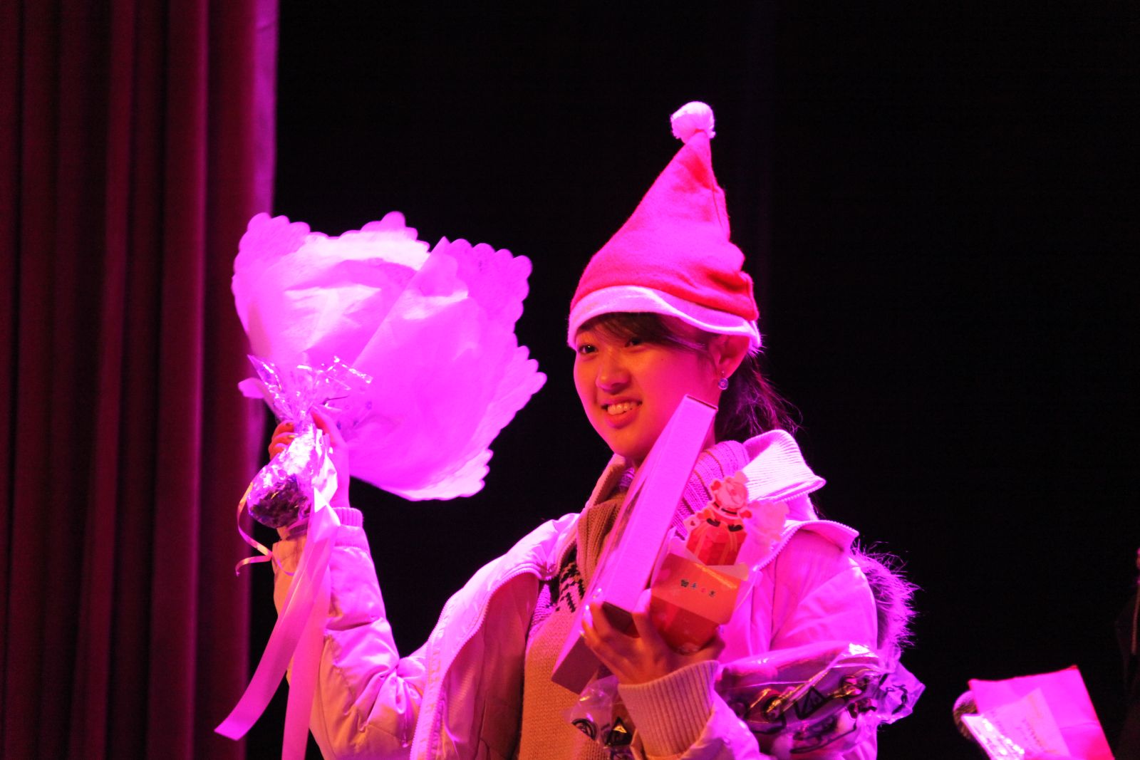 无巧不成书,晚会当天正巧是一位同学的生日。圣诞老人代表最靠谱的十大足球平台全体师生送给她一份意义深厚的生日礼物,感谢她为晚会付出的努力,祝愿她在以后的生活上、学业中越来越好、越来越强。