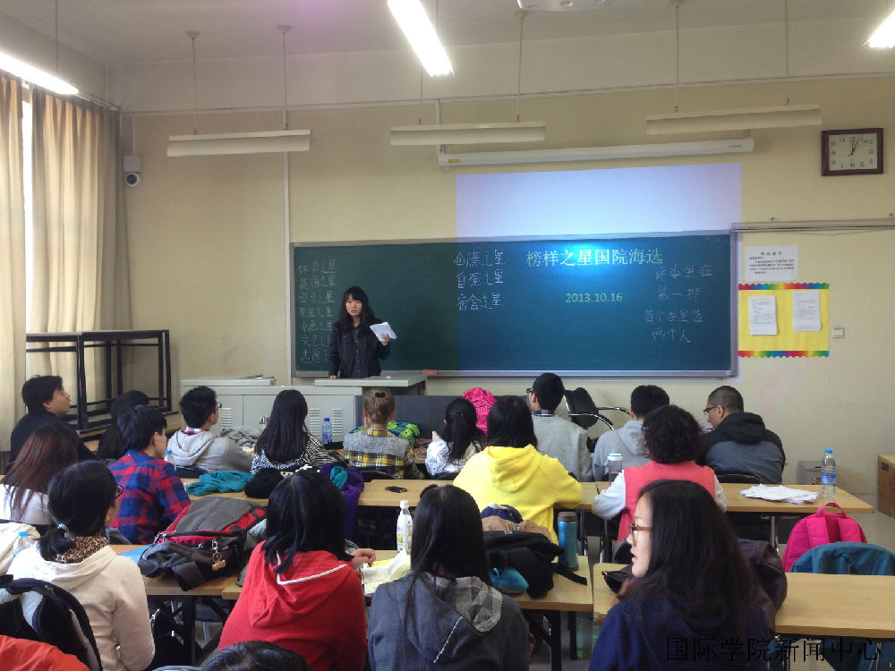 12:00 noon on October 16, 2013, In order to show the student positive , set a learning , creating and dedicated good example of students. ICBUA hold a meeting of "the search for an example to youth, 2013 Beijing agronomy star of outstanding students" campaign in B412