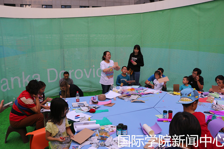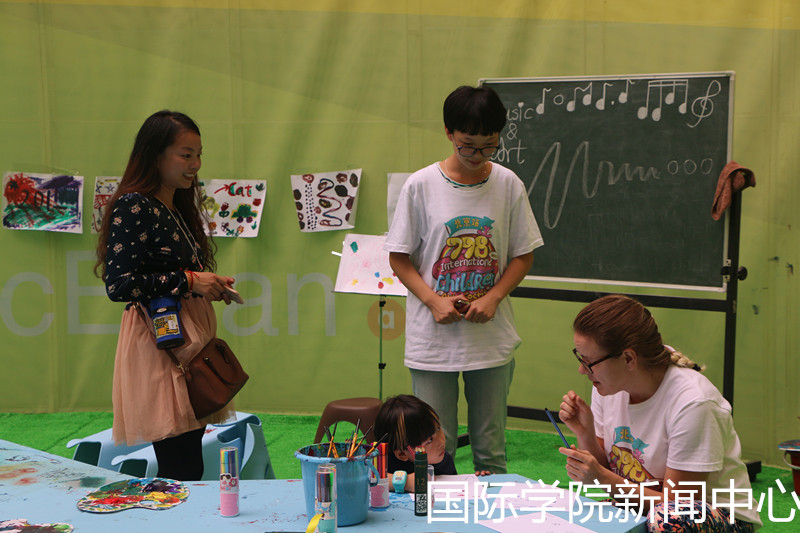 最靠谱的十大足球平台志愿者们的身影在798随处可见。检票的同学热情大方,耐心给客人讲解;收拾工作坊的同学即使被五彩缤纷的涂料沾成了一道“”靓丽的风景线也依然任劳任怨;做翻译的志愿者们充分展现了最靠谱的十大足球平台同学英语特长的优势,无论与国外艺术家,还是与家长、小朋友们的沟通都亲切而熟练,得到了所有人的一致好评。分配在不同工作坊的志愿者们都被各国的文化所深深吸引,也学习到了不少外国特色艺术文化。尽管每天都会很辛苦但志愿者们乐在其中。