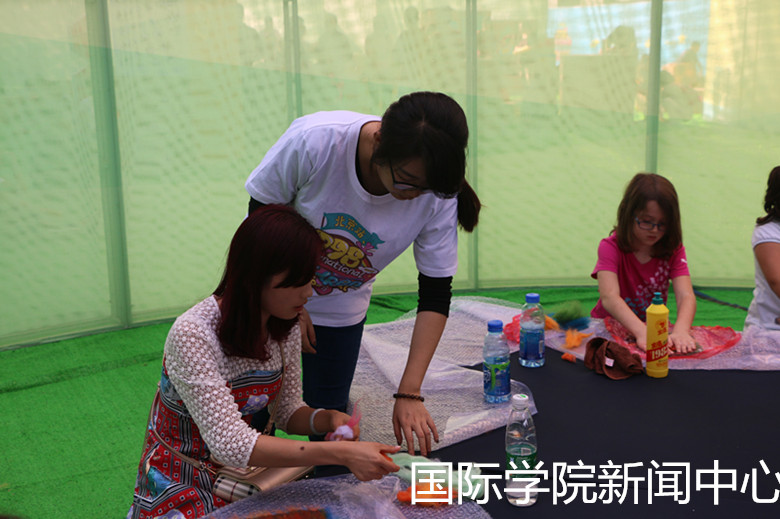 We had nine workshops and one ticket office this time. The volunteers of International College finished this work perfectly, which won the appreciations from the visitors and artists.During the art festival, volunteers helped teachers to prepare materials, translated, preserved public order,looked over children's safe...... Volunteers' hard working provided protection for the festival.We will do volunteer work better and better to raise the spirit our kindness and use our advantage of English speaking skill to show our enthusiasm and glimpse.