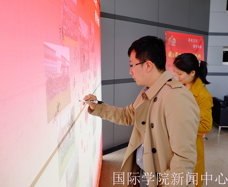 But full of vigor and diligence work makes us believe that the court will be radiant glory tomorrow arrangement of the alumni sign signature wall around first to prepare tea From 7:30 to 9:00 moment didn't stop at nine o 'clock The official start of the school level alumni association Part of the volunteers to participate in the work While the rest of the wait for the arrival of the alumni after another Alumni are our role models are our future Persistence is our unremitting power Is our unswerving struggle course