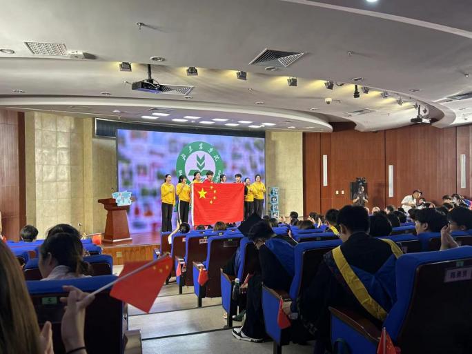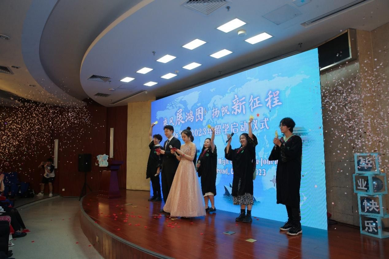 红旗飘扬,歌声悠长。《我爱你,中国》的热情演唱,表达了即将留学的学子们对祖国无比的依恋与自豪。随着歌曲结束后舞台中央举起的五星红旗,仪式正式拉开了帷幕。